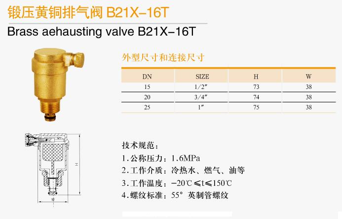 鍛壓黃銅排氣閥B21X-16T技術規范: